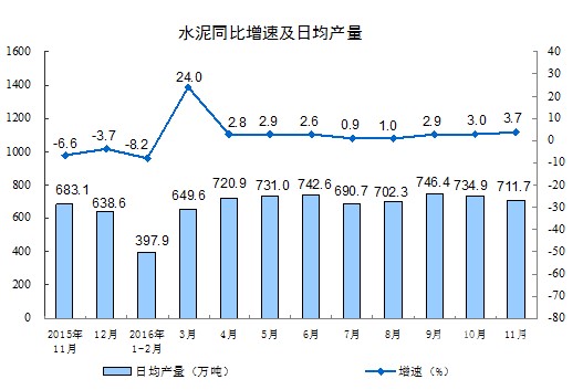 1-11月份全國水泥產(chǎn)量220328萬噸 同比增長2.7%
