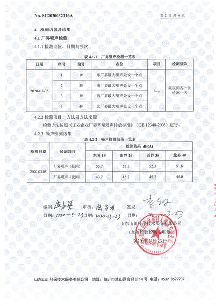 山東金湖水泥有限公司第一季度噪聲檢測公示