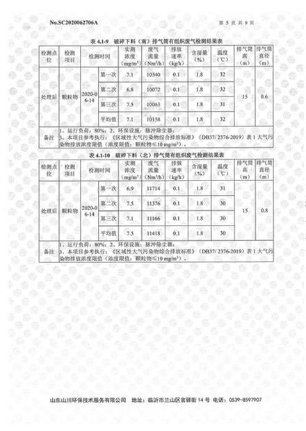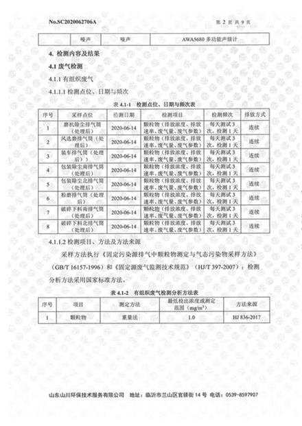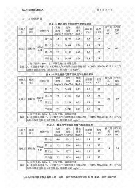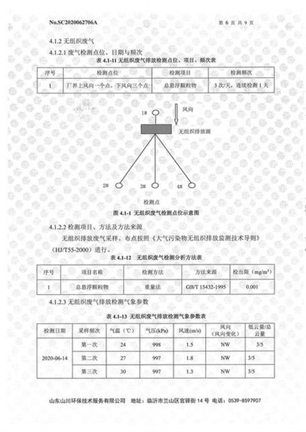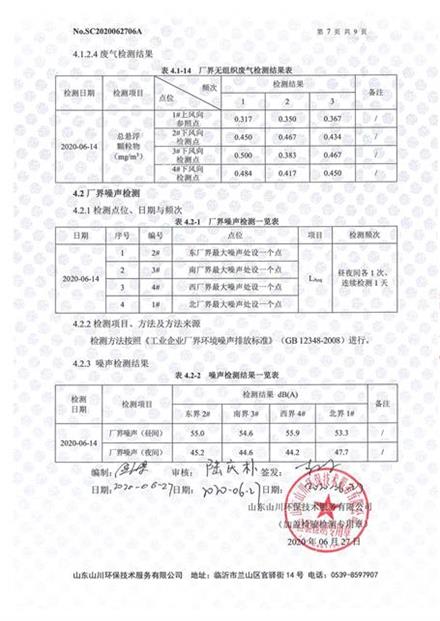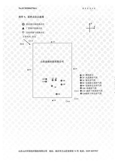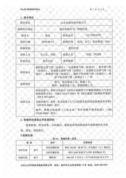 山東金湖水泥有限公司第二季度廢氣以及噪聲檢測公示