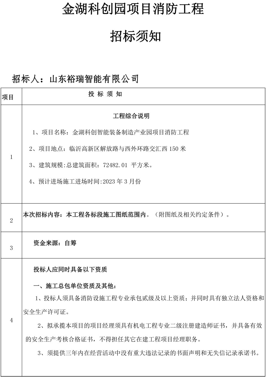 金湖科創產業園二期消防招標須知(點擊下載)
