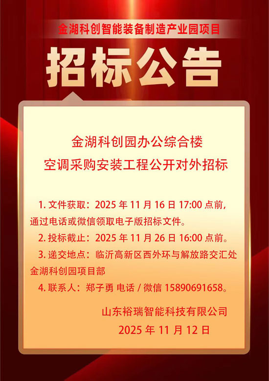 金湖科創(chuàng)園辦公綜合樓空調(diào)采購安裝工程公開對外招標(biāo)